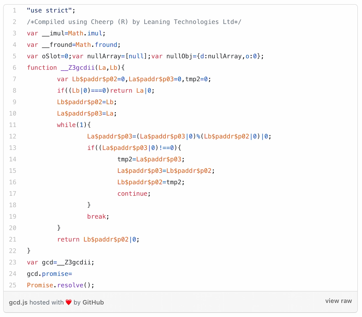 /opt/cheerp/bin/clang++ gcd.cpp -o gcd.js -target cheerp -cheerp-pretty-code