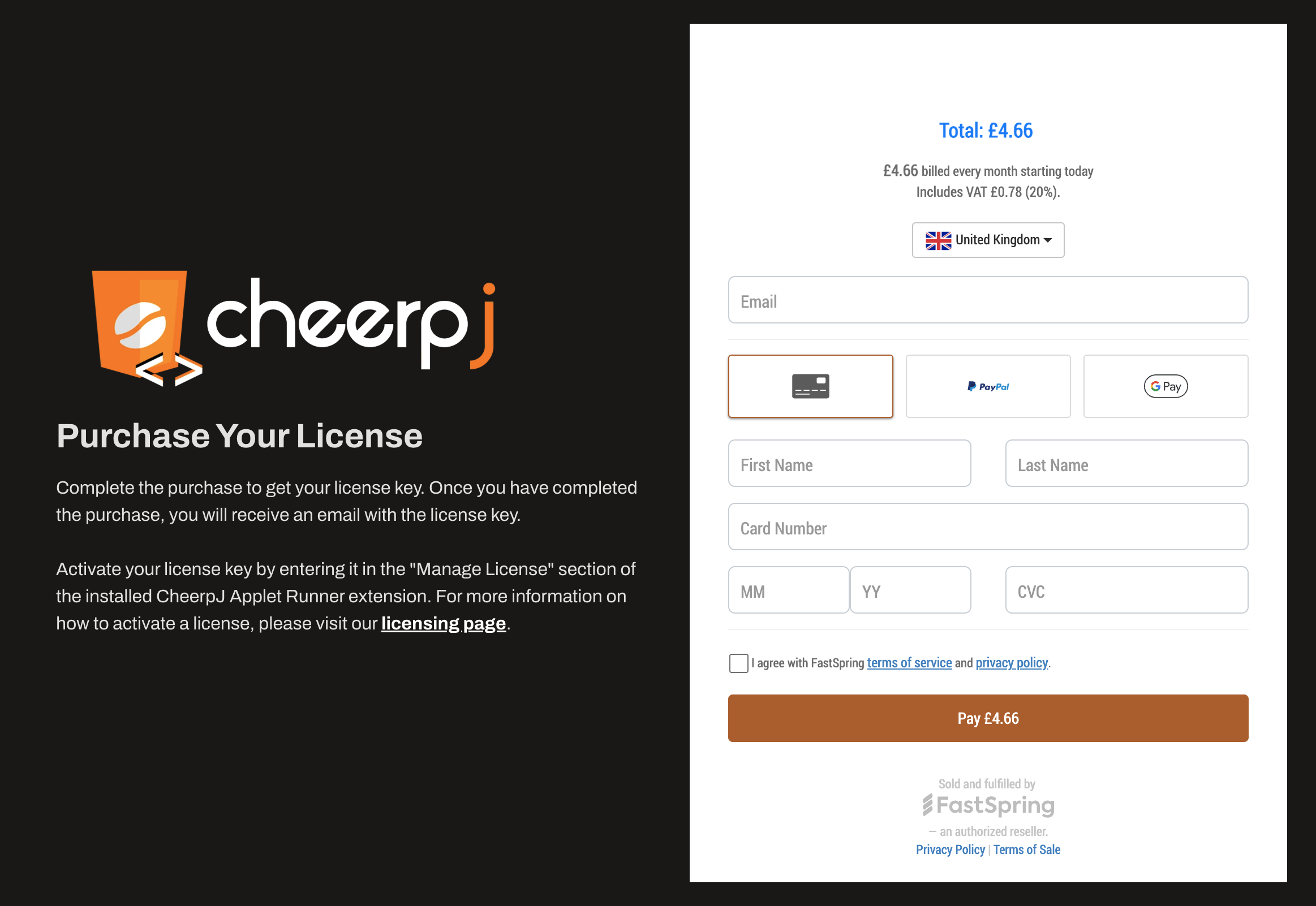 You will be redirected to the Leaning Technologies shop where you can request your license key.